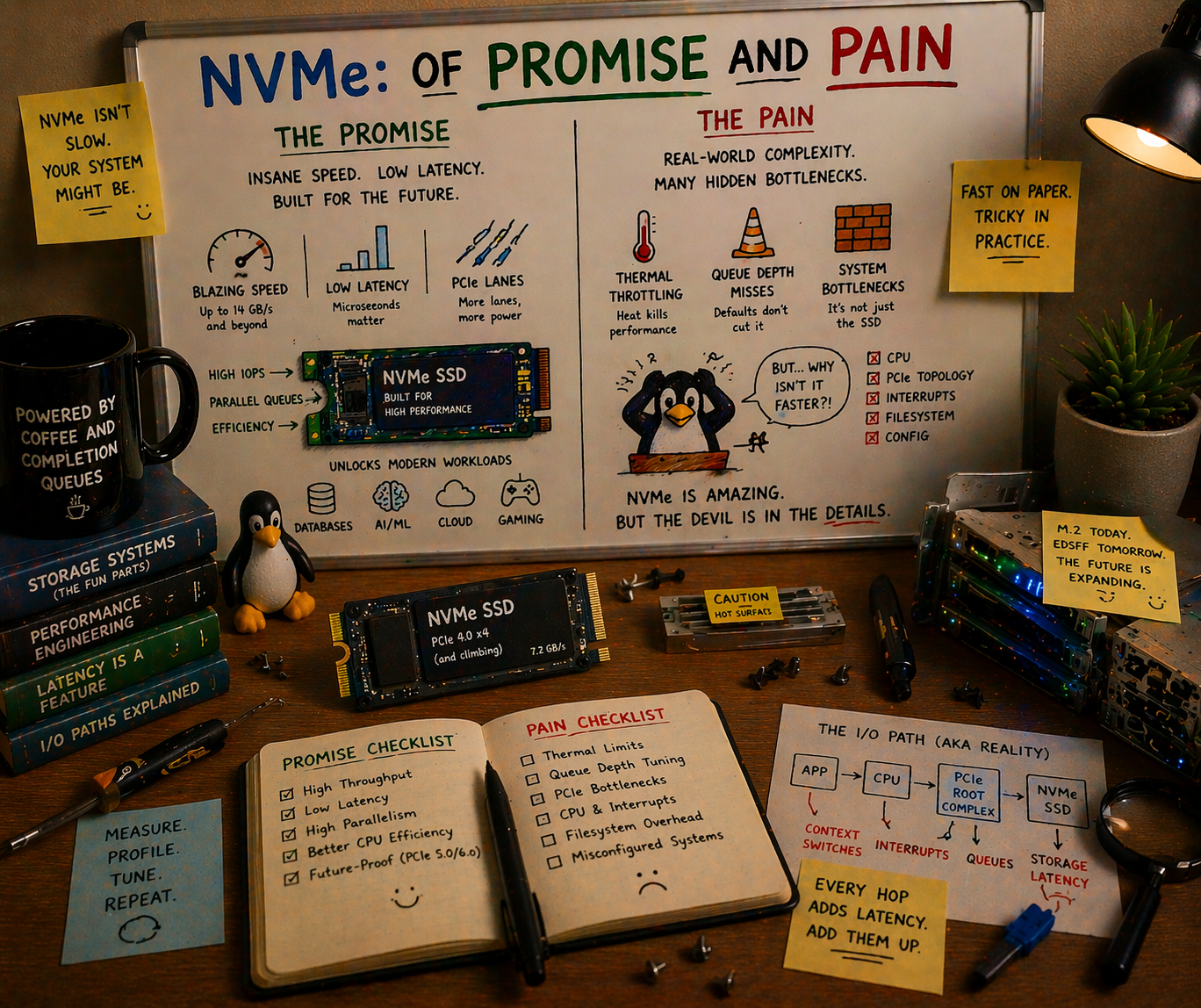 For 40 years, the memory hierarchy was a clean staircase: registers, L1, L2, L3, DRAM, SSD, disk. CXL inserts a new step between DRAM and SSD. Pooled, shared, hardware-coherent memory at 150-400 nanoseconds. For storage systems, it means shared metadata without consensus and memory pools that eliminate stranded DRAM.